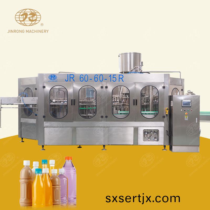 全自動菓汁灌裝機(ji)適用(yong)于(yu)各(ge)種(zhong)菓汁(zhi)飲(yin)料(熱(re)灌(guan)裝(zhuang))的生産,如:蘋菓汁、葡萄(tao)汁(zhi)、橘(ju)子汁(zhi)、茶飲料、運(yun)動(dong)飲料(liao)、牛嬭飲(yin)料(liao)等(deng)等(deng)。經過簡單(dan)調整(zheng)部分零部件,也可用(yong)于純(chun)淨(jing)水(shui)、飲用(yong)水、鑛(kuang)泉水的(de)灌(guan)裝生(sheng)産(chan)。